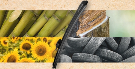 Ciesz się doskonałą jakością i trwałością wycieraczek dzięki bardziej zrównoważonej mieszance gumowej, składającej się w ponad 80% z naturalnych, odnawialnych lub odzyskanych w procesie recyklingu materiałów: gumy te są wykonane z materiałów pochodzących między innymi z drzewa hevea, trzciny cukrowej, olejów roślinnych i opon poddanych procesowi recyklingu.